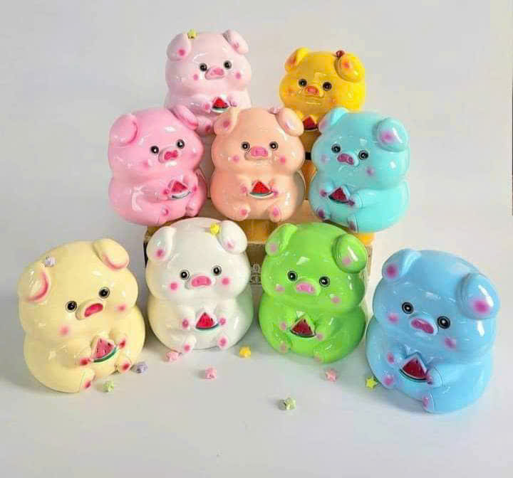 Heo đất/ Lợn đất HEOO XINH mẫu heo cầm dưa hấu size 18cm, đựng tiền tiết kiệm, làm đồ decor